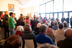 The artworks were borrowed back from each centenarian subject or their family for the event.
